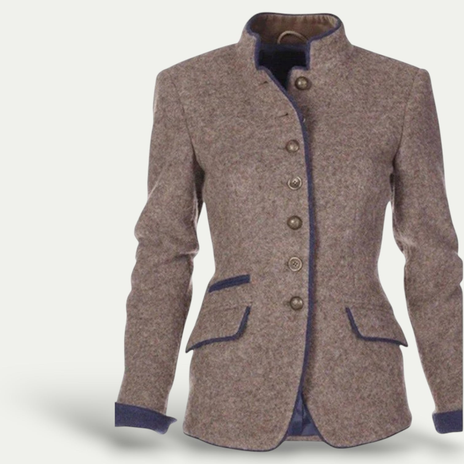 Elevate Your Wardrobe: Discover the perfect blend of structure and ease with our tailored short blazer. Its sharp stand collar and precise seam work offer a flattering, fitted profile, making it an essential piece for the modern woman.